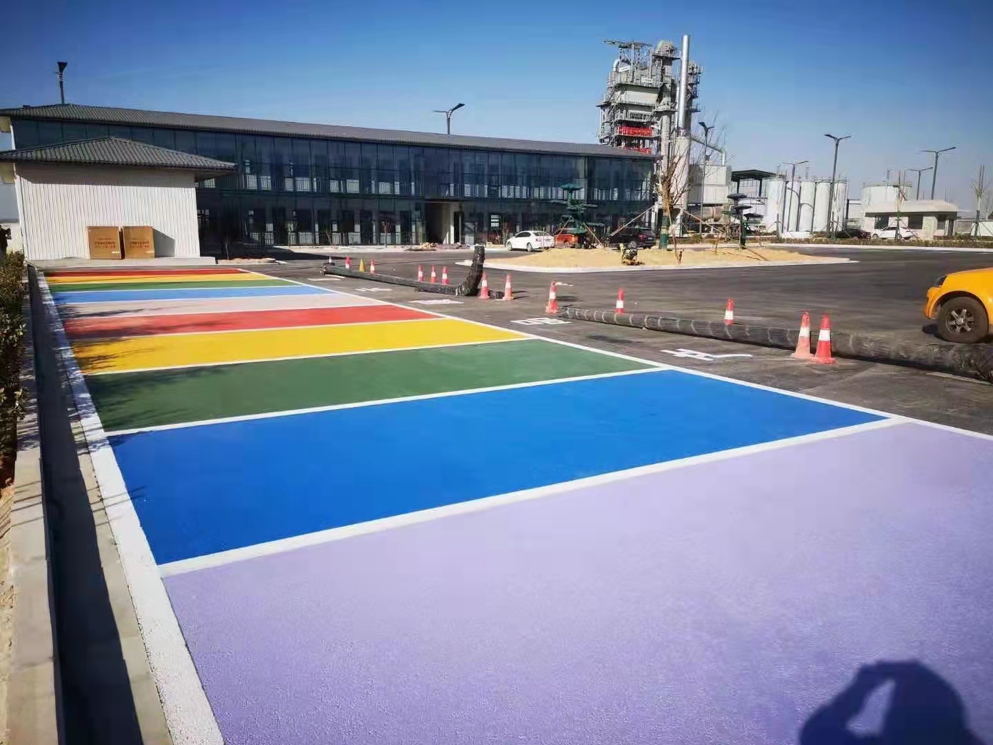 彩色雙組份聚氨酯罩面劑是一種以高分子復合材料為基料,加入顏料填料助劑等組成,不僅高強度而韌性好,該產品主要采用噴涂設備噴涂完成,一般有兩層組成,首先在路面上先噴涂一層,然后再進行二次補色噴涂,可短時間內完成大量面積鋪裝,可噴涂的顏色有紅、黃、藍、綠、灰等顏色,亦可定制顏色。